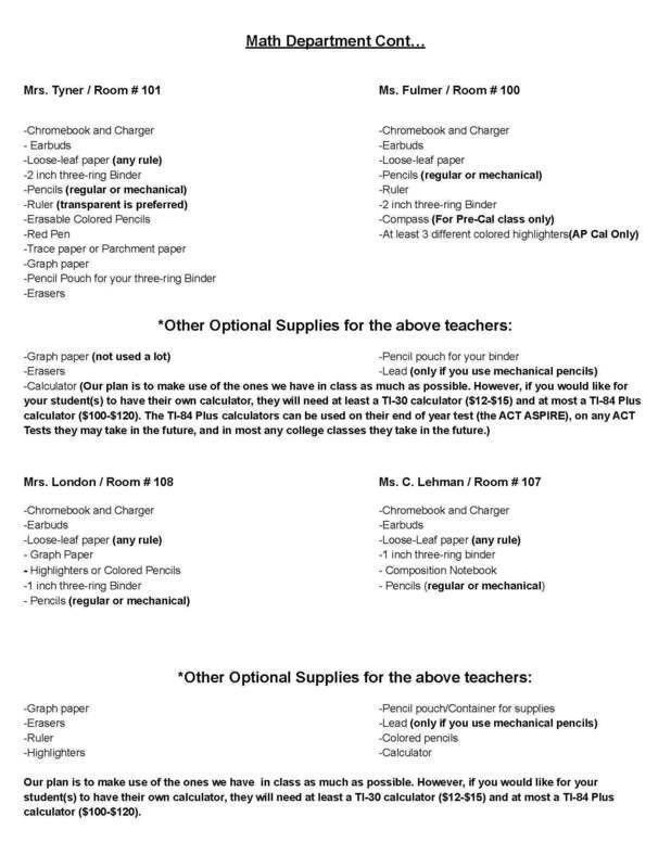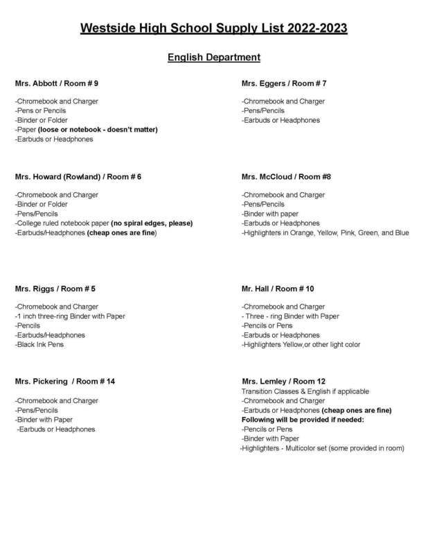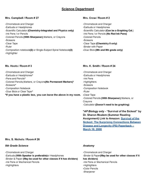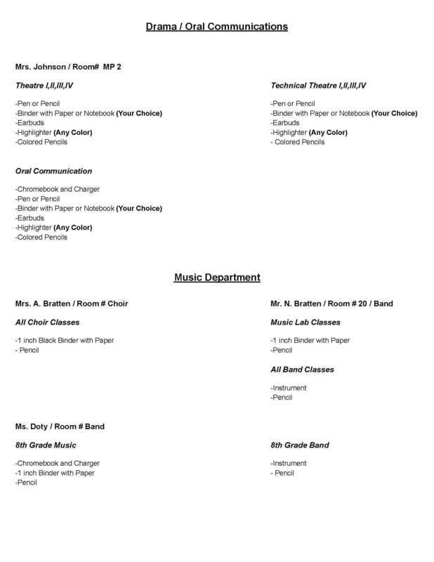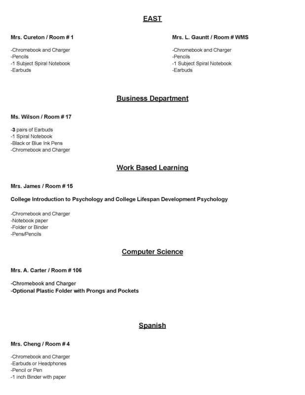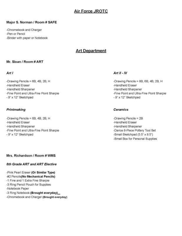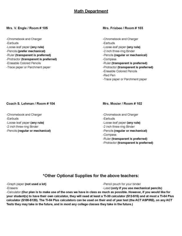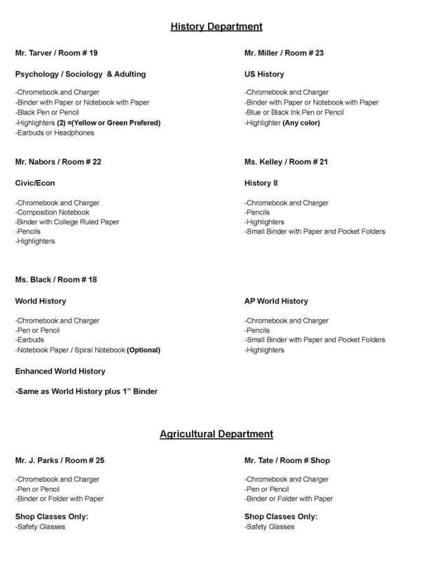 Back to School Supply Lists for Grades 8-12