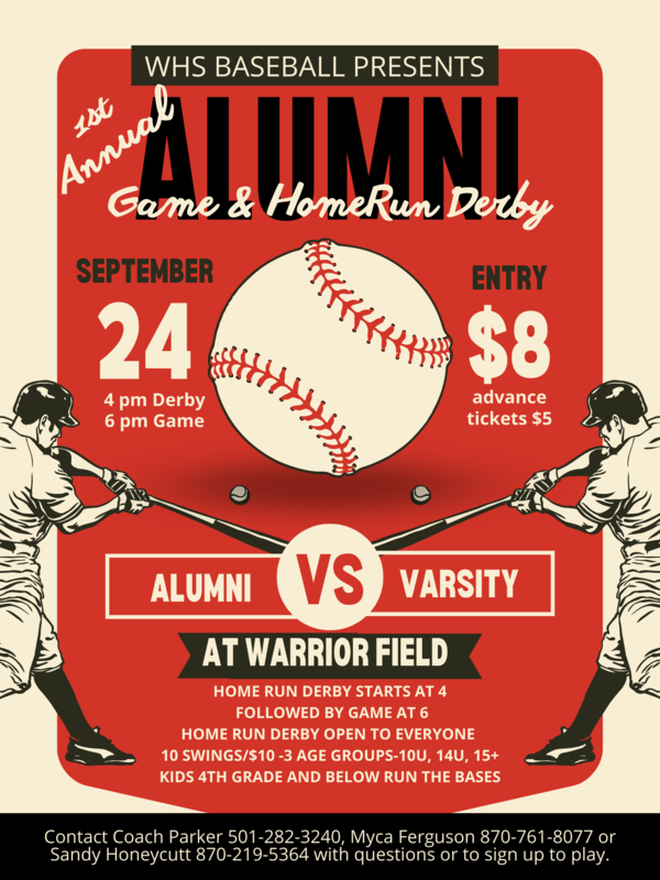 WHS Baseball Presents - 1st Annual Alumni Game & HomeRun Derby on September 24, 2022 at 4pm. See flyer below for more information!